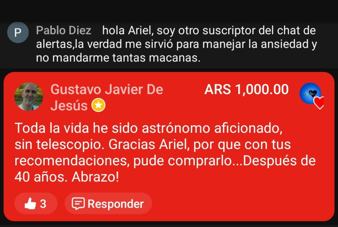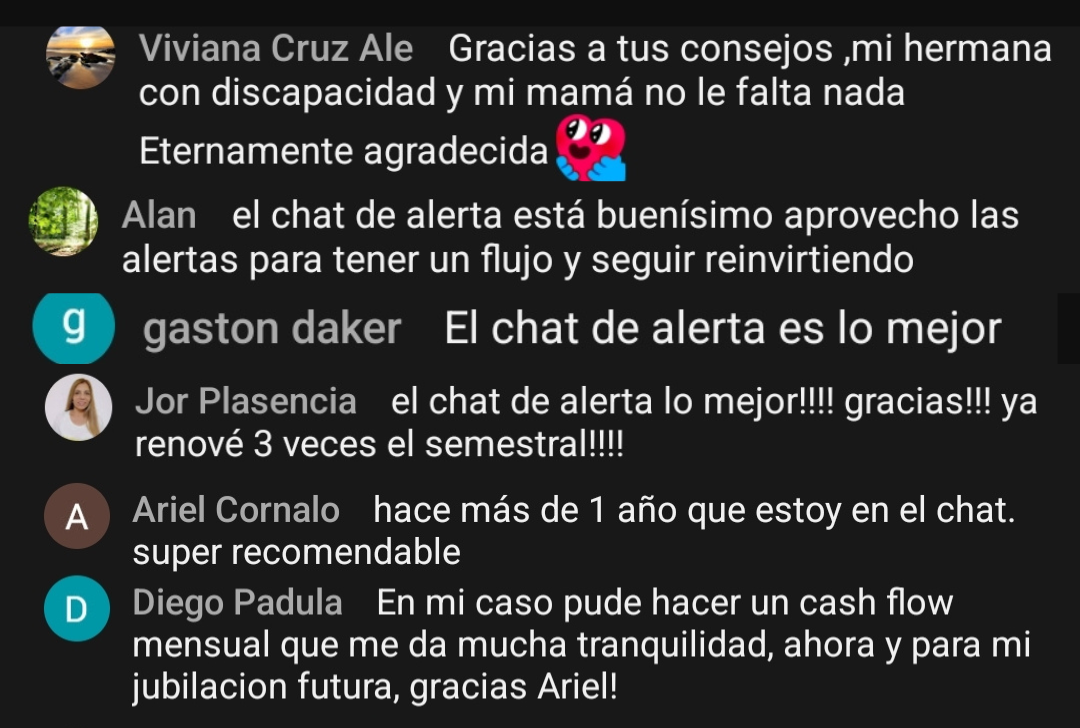 Con la asesoría financiera de Ariel Spadoni y su equipo, en LATIDOS DEL MERCADO vas a poder acceder a recomendaciones de inversión en el momento exacto, para que no dejes pasar las mejores oportunidades. Ya hemos ayudado a más de 1,000 personas a aumentar sus rendimientos mes a mes, y estamos aquí para que vos también puedas lograrlo. 💼📈
